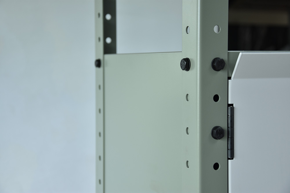 The simple stacking principle using L-profiles and shelves remains the foundation, onto which a number of modular add-ons have been introduced, enabling semi-closed and closed spaces as well as mobility. By using the same elements across all size and purpose variations, the system remains fully modular, meaning that as needs change over time, so can the product.