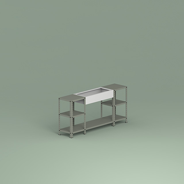 Designed at table height, re:750 combines structure and utility. Available in several lengths, it functions equally well as shelving or workspace.